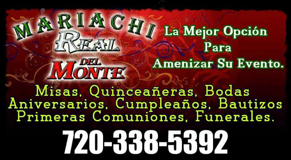 Bienvenidos al sitio web del mariachi real del monte, la mejor opción musical en todo el estado de colorado, integrado por musicos de amplia experiencia y profesionalismo. dispuestos a brindarle a usted una actuación a la altura de sus espectativas y que hara de su evento algo inolvidable. Gran cantidad de clientes satisfechos nos contratan y nos recomiendan a lo largo y ancho del estado de colorado